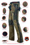 Satin underlining for comfortable riding in hot or cold weather.