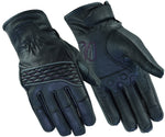 Women's glove made with premium grade durable Aniline goat featuring contrasting hot pink stitching, gel palm, touch screen finger tips, reflective piping,light lining and adjustable wrist strap.