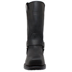13"" Harness Black Heavy Duty Full-Grain Oiled Leather Oil Resistant Outsole Square Soft Toe O-Ring Ankle Harness Straps PU Cushioned Insole Goodyear Welt Open Stock: M Width 7.5-14 W Width...