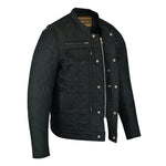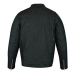 Front silver metal zipper hidden under snap-placket blocks wind & rain.
