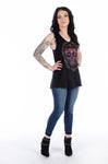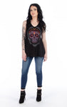 Calavera Skull Lace Back TankMachine wash cold, inside out. No bleach. Low heat or hang/lay flat to dry.95% Cotton/ 5% Spandex