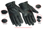 Men's water resistant glove made with premium drum dyed Aniline cowhide, touch screen finger tips, gel palm and adjustable wrist strap.