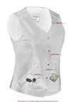 Milled Promo Cowhide 1.1-1.2 mm.V-Neck Vest.Plain Sides.Single panel back ideal for easy accessorizing with patches and club logos, embroidery or airbrushed art work.2 outside pockets.2 inside concealed gun pockets made...