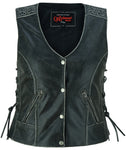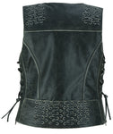 Soft Premium Drum Dyed Gray Cowhide 1.1 - 1.2mm.Grommet detailing with lacing accents for stylish look.Interior pocket with wire feed.2 inside concealed gun pockets made of special heavy duty textile...