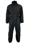 Waterproof soft polyester outer shell.Two large outer pockets.Back zippered vent.Attached hood.Adjustable web belt.Reflective piping on chest, back & sleeve.Heat guard on bottom of legs on pants.