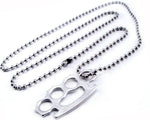 Get "tuff" with this mini brass knuckle necklace. Pendant is 2" long and strung on our ball chain necklace.