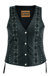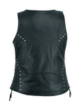 Snap Front w/lacing and studs detail.