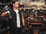 Men's tough fingerless glove made in premium drum-dyed Deerskin leather. Featuring gel palm for long haul comfort, pull-tabs allow for easy removal, and an adjustable wrist strap.
