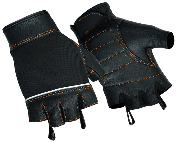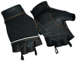 Women's traditional fingerless glove made in premium drum dyed naked goat featuring gel palm for long haul comfort, reflective stripes to enhance night time visibility, finger pulls for easy removal,...