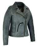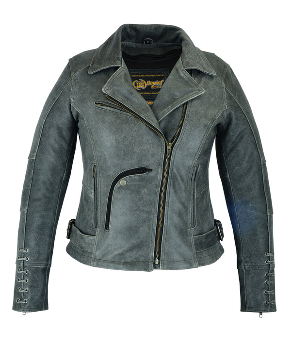 Soft Premium Drum Dyed Gray Cowhide 1.0 - 1.1mm.Grommet detailing with lacing accents for stylish look.Snap down lapel and collar.Vented zipper chest pocket.2 back vents.Perforated action.Heavy mesh inner liner for...