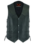 When you're out on the open road, a well-fitting leather vest can keep you cool and protect you from the elements. Our men's side lace snap vest for bikers is...