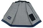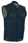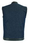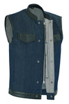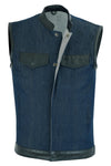 Men's Broken Blue RoughRub-Off Raw Finish Denim Vest W/Leather
