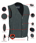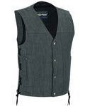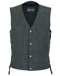 Men's Rough Rub-Off Raw Finish Broken Gray Denim Vest