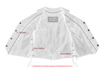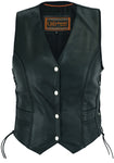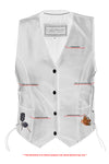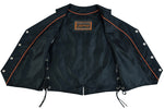 Soft Milled Cowhide 1.1 - 1.2mm.Attractive thick braid detailing down front & back and across pockets.2 outside pockets and 1 inside pocket for storage.Side laces for MC look & size...