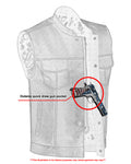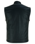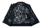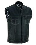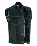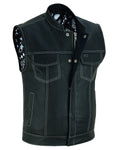 Men's Paisley Black Leather Motorcycle Vest with White Stitchin