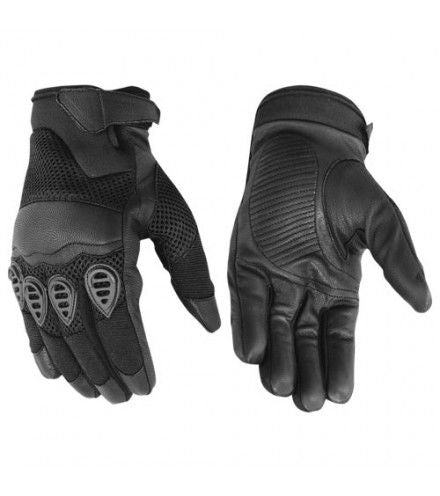 Combination leather/mesh glove featuring leather palm, adjustable wrist strap and breathable liner.