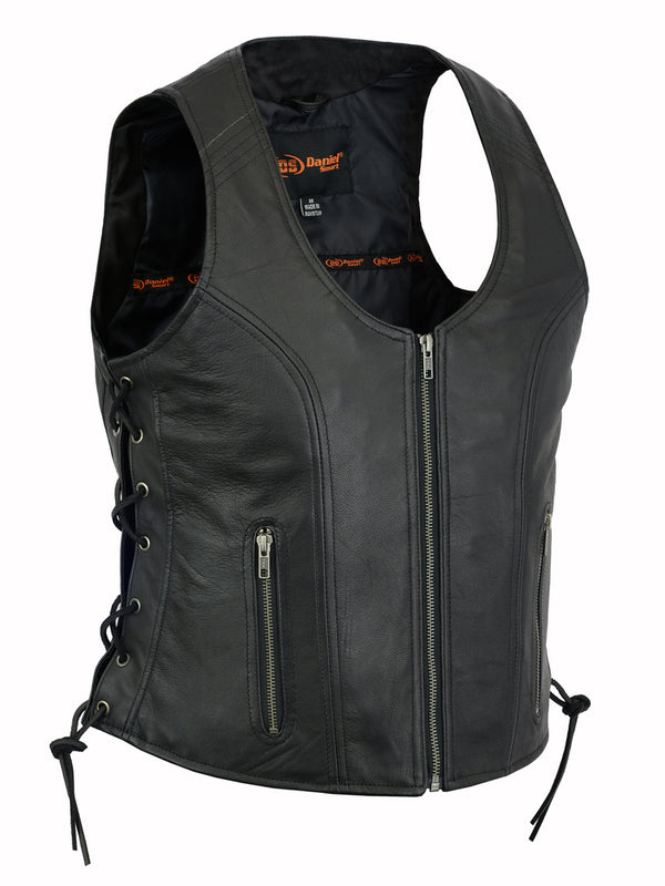 Women's Stylish Open Neck Side Lace Zipper Front Vest