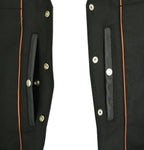 Ultra-Soft Drum Dyed Naked Goat Skin 0.9-1.0mm. Rounded open neck for a stylish look. Zipper front closure w/stitching detail. Single panel back ideal for easy accessorizing with patches and club logos, embroidery...
