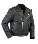 Soft Drum Dyed Goat Skin 1.1-1.2mm.Plain Sides.Full leather action back. Beltless design.Two lower hand warmer pockets and two inside pockets.Black satin liner.Heavy snaps & heavy duty zippers.