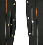 2 inside concealed gun pockets made of special heavy duty textile with built-in holsters and snap closure.