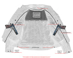 2 vents on the sleeves, 2 front vent pockets & 4 eyelets vents under each arm.
