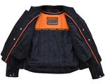 2 inside concealed gun pockets made of special heavy duty textile with built-in holsters and snap closure.