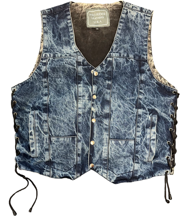 MOTORCYCLE BLUE DENIM VEST, STONE WASHED, CONCEALED CARRY POCKETS AND SINGLE PANEL BACK Single panel back ideal for easy accessorizing with patches and club logos, embroidery or airbrushed art work....