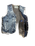 MEN'S BLUE DENIM VEST, STONE WASHED, CONCEALED CARRY POCKETS AND SINGLE PANEL BACK